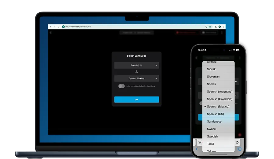 Powered by Prism Language Systems, Pocketalk’s proprietary translation solutions suite, Sentio simplifies multilingual meeting translations, whether it’s addressing a live crowd or hosting a virtual meeting with a diverse audience.