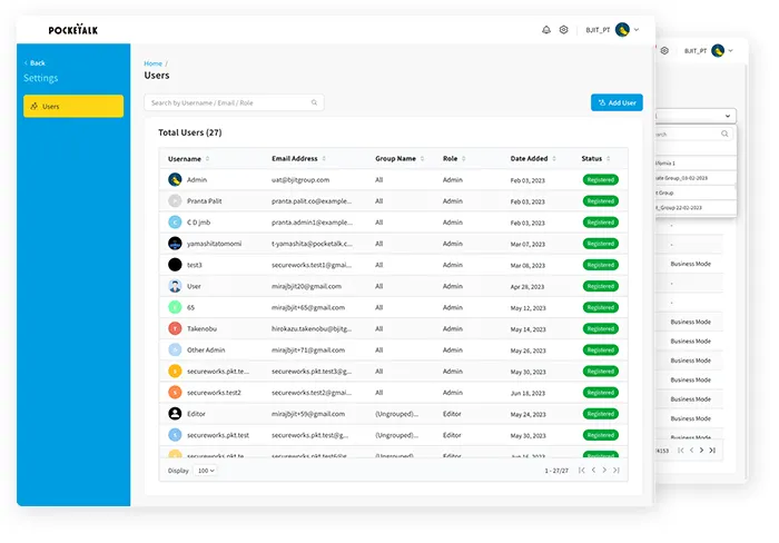 A secure, centralized administrative panel for all the Pocketalk translation solutions in your organization